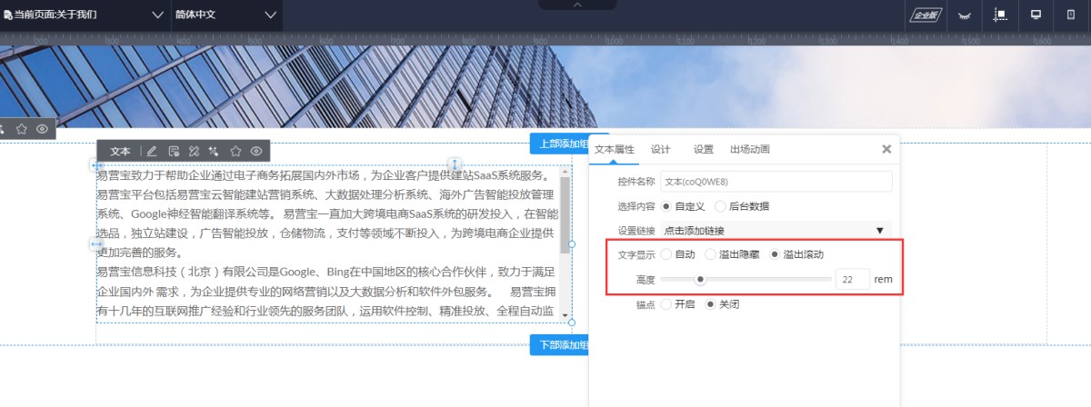 如果选择溢出滚动,则超出高度的部分文字可以通过滚动条查看。