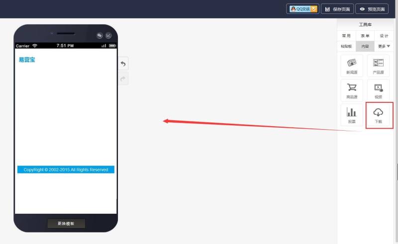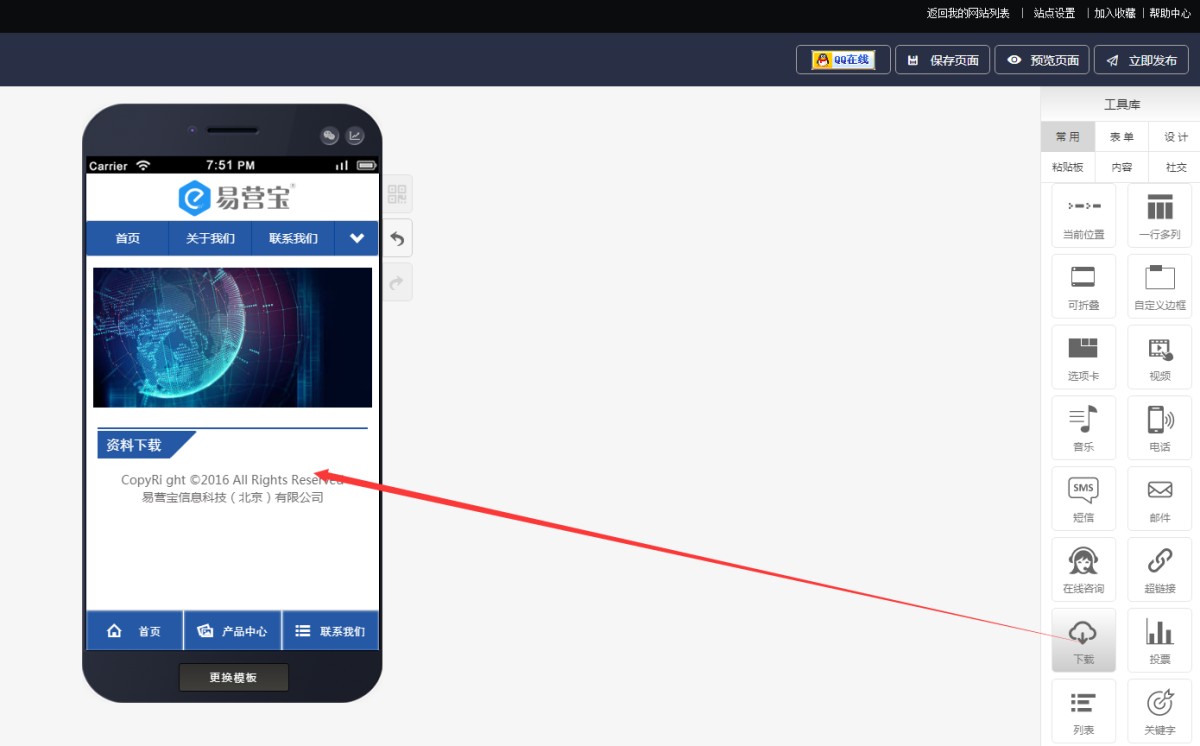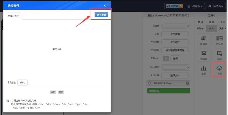 1,从工具库里选择下载控件,拖拽添加到页面上。
