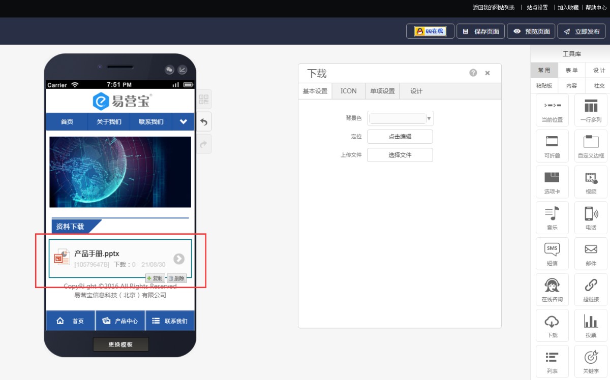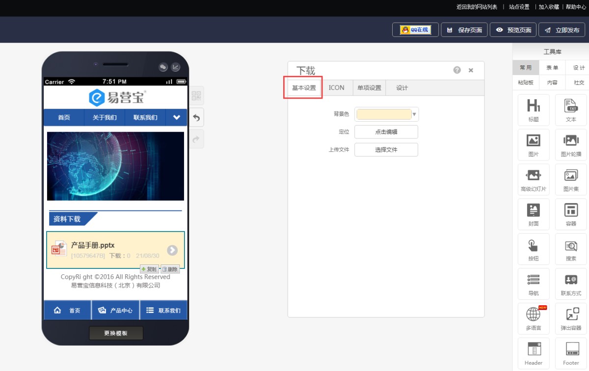 6,在基本设置里,可以修改下载控件的背景色和位置。