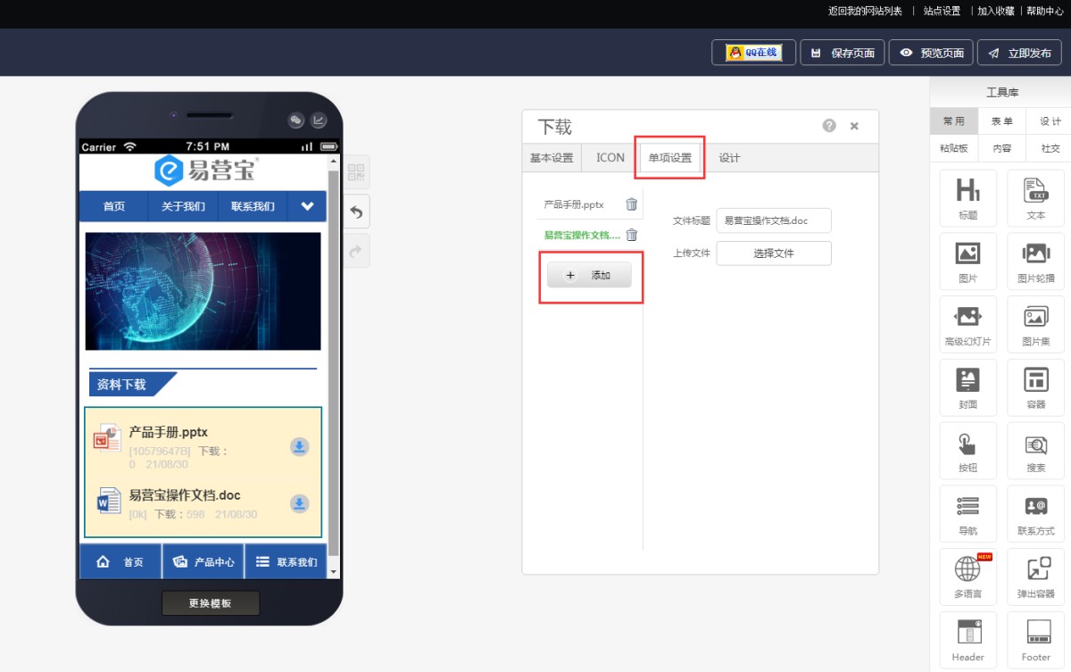 8,在单项设置里,可以添加和删除文件,也可以修改文件标题。