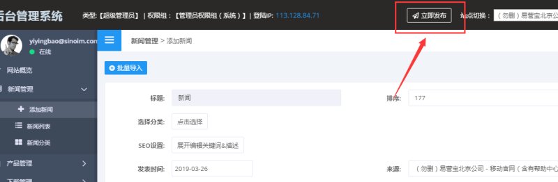 全部新闻添加完成后,需点击发布,发布成功后,PC站和移动站同时生效。