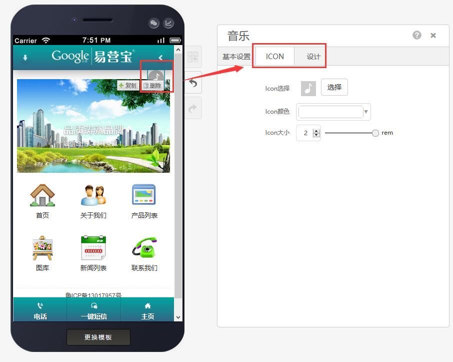 第三步:在基本设置中,选择是否自动播放/循环播放/浮动、音乐及背景色、定位和层级,如下图: