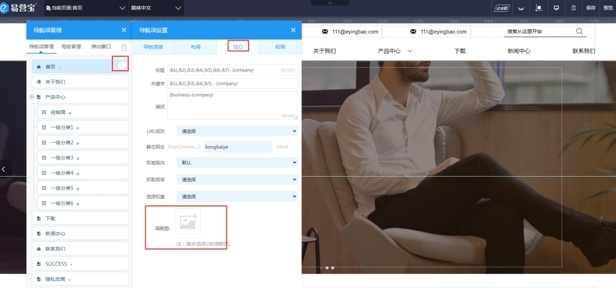 7,微信授权设置完成后,在网上就可以设置转发图片了,普通导航页面是在UI编辑页面的导航项设置里上传。